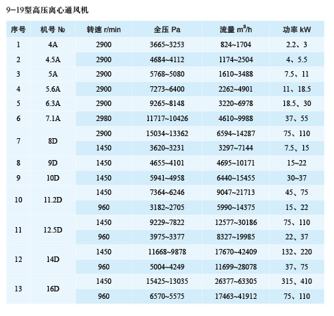 型式:本風(fēng)機(jī)為單吸入式,通常有№4、 4.5、5、5.6、 6.3、7.1、8、9、10、11.2、12.5、14、16共13個(gè)機(jī)號(hào)。