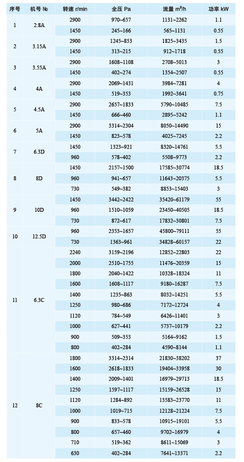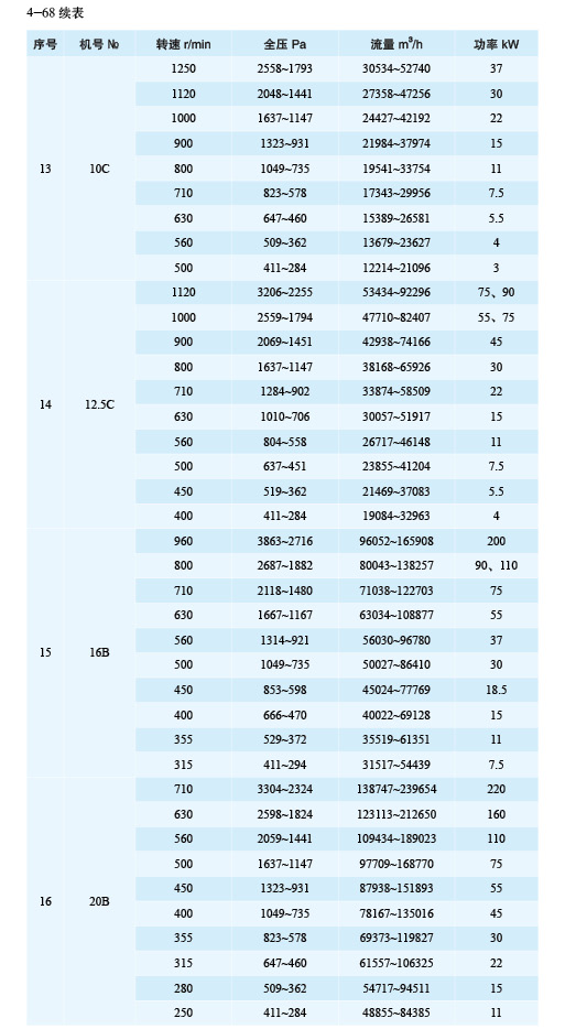 4-68通風機和引風機均為單吸入,有8#、9#、10#、11.2#、12.5#、14#、16#共七個機號。每種風機均可制成右旋或左旋兩種形式。風機的傳動方式均為D式,電機與風機聯(lián)接采用彈性聯(lián)軸器直聯(lián)傳動。